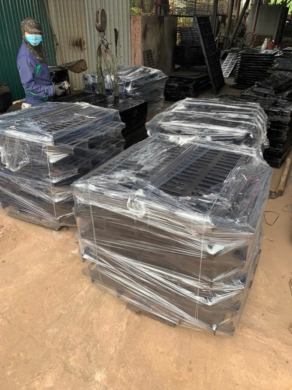Nắp hố ga gang khung dương có lỗ thoát nước kt 900x900mm